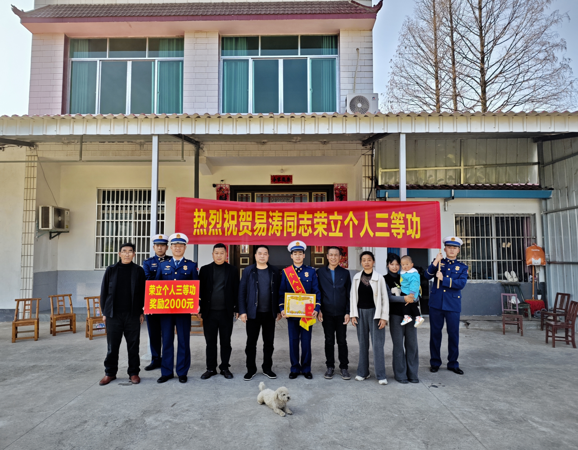 “送獎(jiǎng)報(bào)喜團(tuán)”一行拉著鮮紅的橫幅,捧著沉甸甸的榮譽(yù)證書(shū),走進(jìn)了立功同志易濤家中分享榮光。送獎(jiǎng)團(tuán)成員與功臣家屬?lài)谝黄?,親切交談,中隊(duì)主管詳細(xì)介紹了獲獎(jiǎng)指戰(zhàn)員在隊(duì)伍中的現(xiàn)實(shí)表現(xiàn)和成長(zhǎng)進(jìn)步,仔細(xì)詢(xún)問(wèn)了家屬們的生活情況及實(shí)際困難。